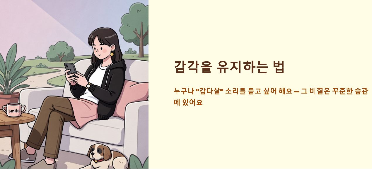누구나 "감 다 죽었네"라는 소리보다 "감다살"이라는 소리를 듣고 싶어 하죠. 일상에서 유연한 감각과 센스를 유지하기 위한 실천적인 방법들을 소개할게요.