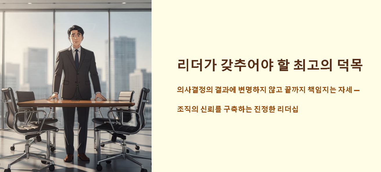 - 조직 신뢰도의 향상: 책임자가 도망치지 않고 자리를 지키며 결자해지하는 모습을 보일 때 구성원들은 안도감을 느끼며 몰입도가 높아집니다.