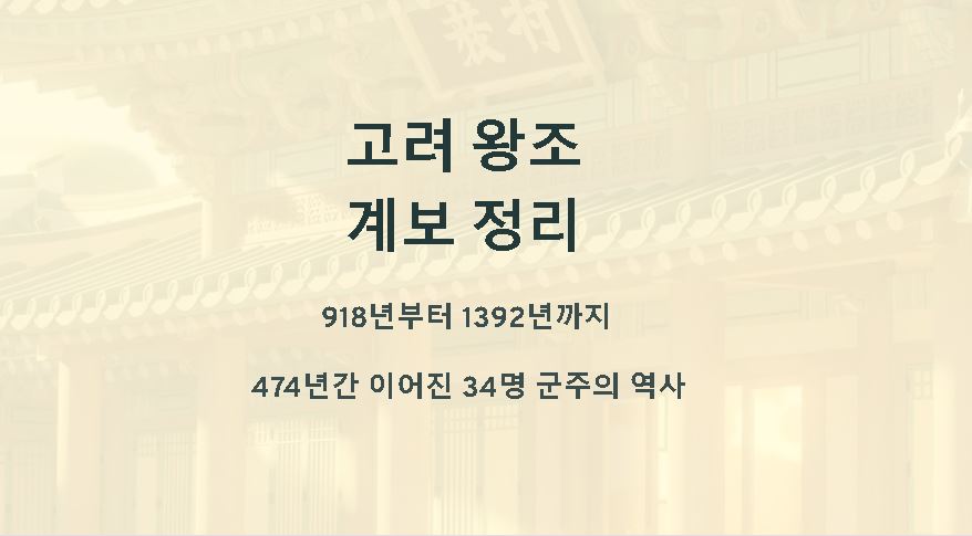 고려의 34대 계보를 단 한 명도 누락 없이 짚어보는 것은 집에서 하기 쉬운 작은 정리들이 모여 큰 질서를 만들듯 우리 역사의 근간을 이해하는 영리한 살림의 지혜가 됩니다. 복잡하게 생각하기보다 정성 들여 집안일을 하듯 칭호와 역사의 신호를 따라가다 보면, 고려가 가졌던 개방성과 끈질긴 생명력이 현대의 우리에게도 큰 보탬이 되는 지식으로 남을 거예요.
