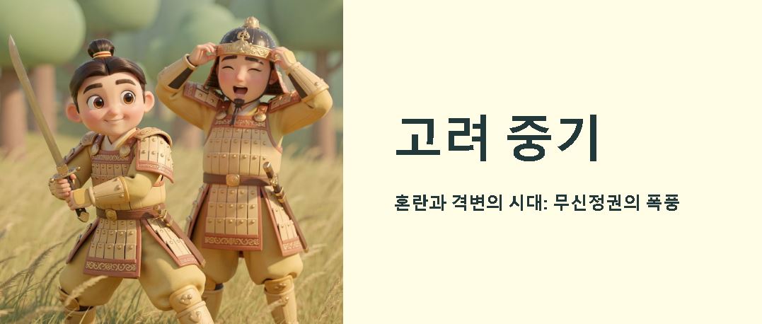 고려 중기는 외척 세력인 문벌 귀족의 득세와 이에 반발한 무신들이 정권을 장악하며 왕권이 바닥에 떨어진 혼란의 신호가 가득한 시기입니다. 습기 방지를 위해 제습제를 두듯 국가의 질서를 바로잡으려 노력했으나, 100년간 이어진 무신정권 아래서 허수아비 왕으로 머물러야 했던 군주들의 계보를 가계부 쓰듯 꼼꼼히 확인해 보세요.