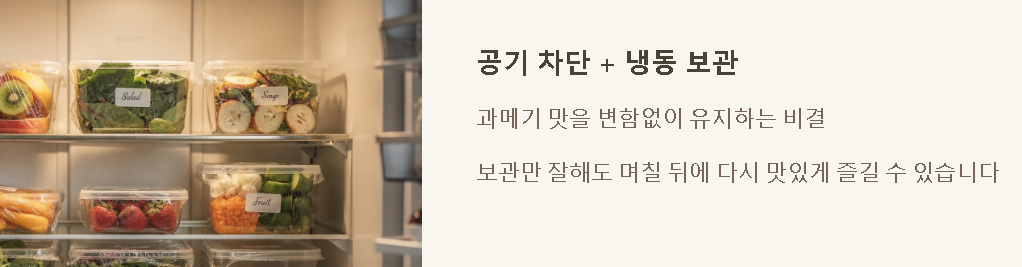 - 랩으로 개별 포장하여 공기 노출을 최소화하는 것이 핵심입니다.