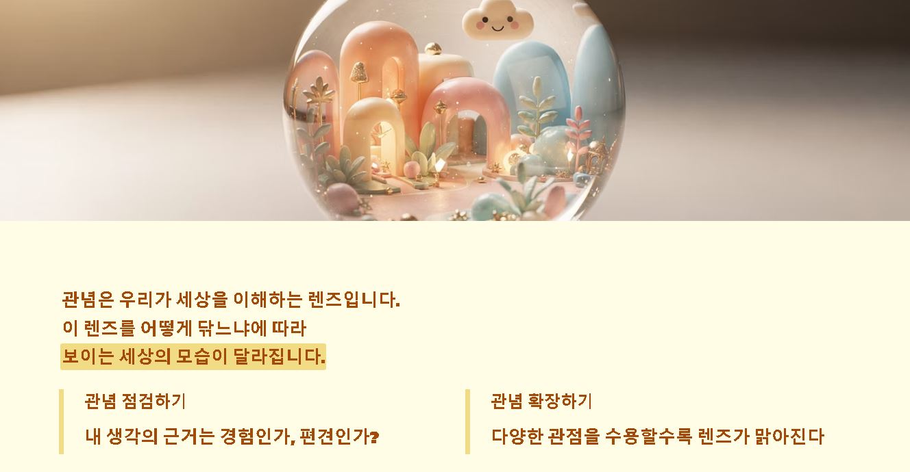 요약: 관념은 우리가 세상을 이해하는 렌즈이며, 이 렌즈를 어떻게 닦느냐에 따라 보이는 세상의 모습이 달라집니다.