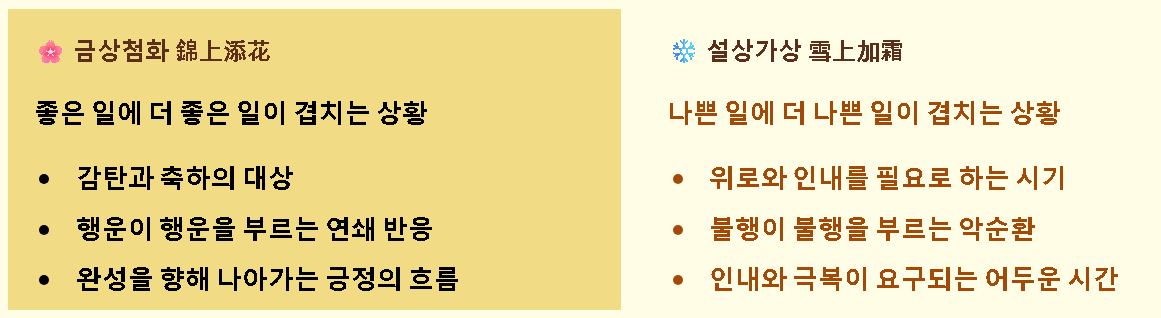 4. 상반된 의미의 설상가상과의 대조적 특징
