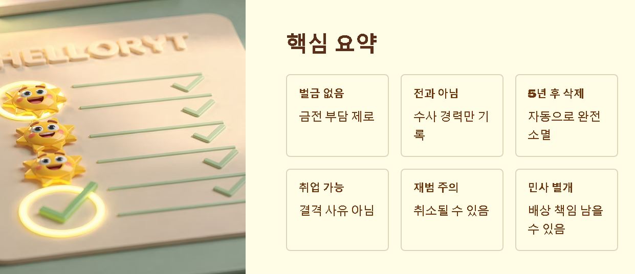 - 전과 기록 여부: 벌금형은 평생 기록이 남지만, 기소유예는 전과가 아닌 '수사 경력'으로만 남습니다.