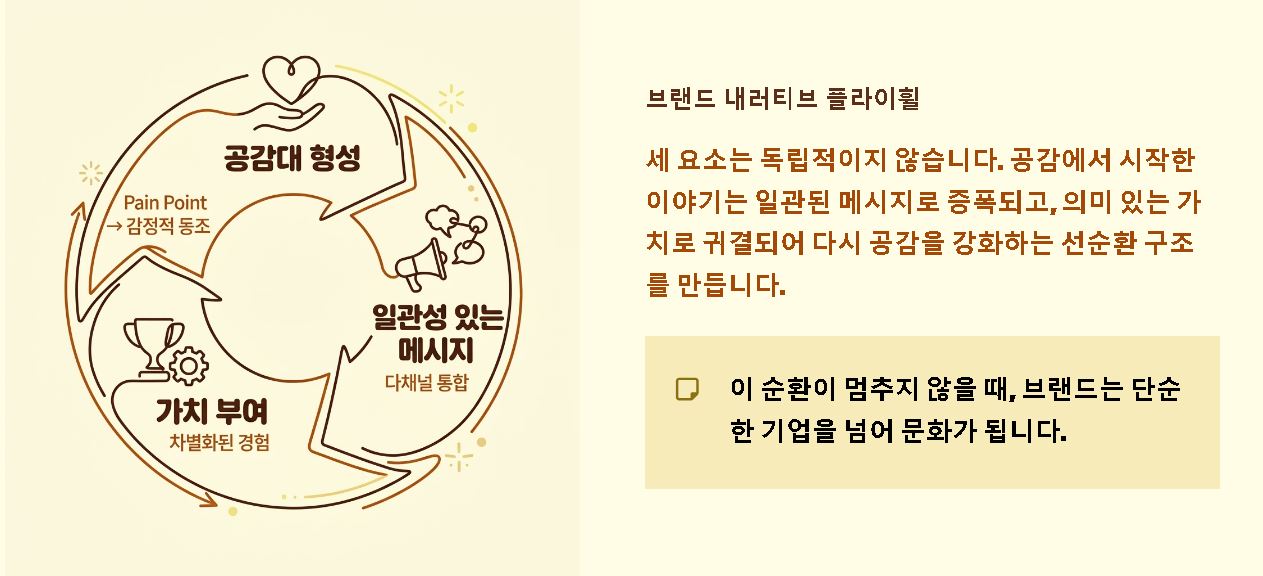 - 일관성 있는 메시지: 다양한 채널에서 전달되는 이야기가 하나의 거대한 서사 안에서 움직일 때 브랜드 신뢰도가 극대화됩니다.