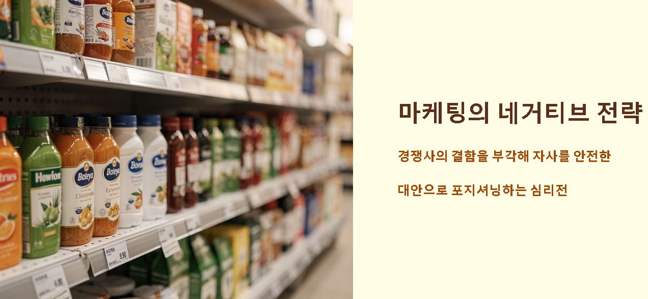 - 공포 마케팅(Fear Appeal): 환경 오염이나 질병의 위험성을 강조하며 자사의 정수기나 공기청정기가 없는 삶의 위험성을 부각하는 전략도 광범위한 의미의 네거티브에 포함됩니다.