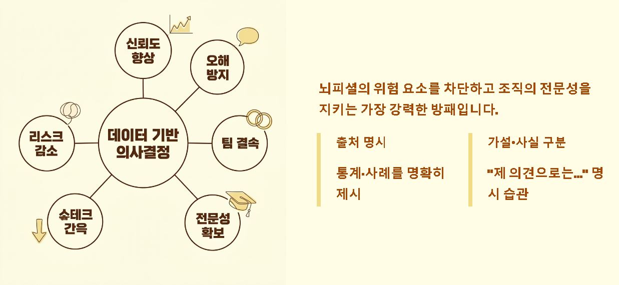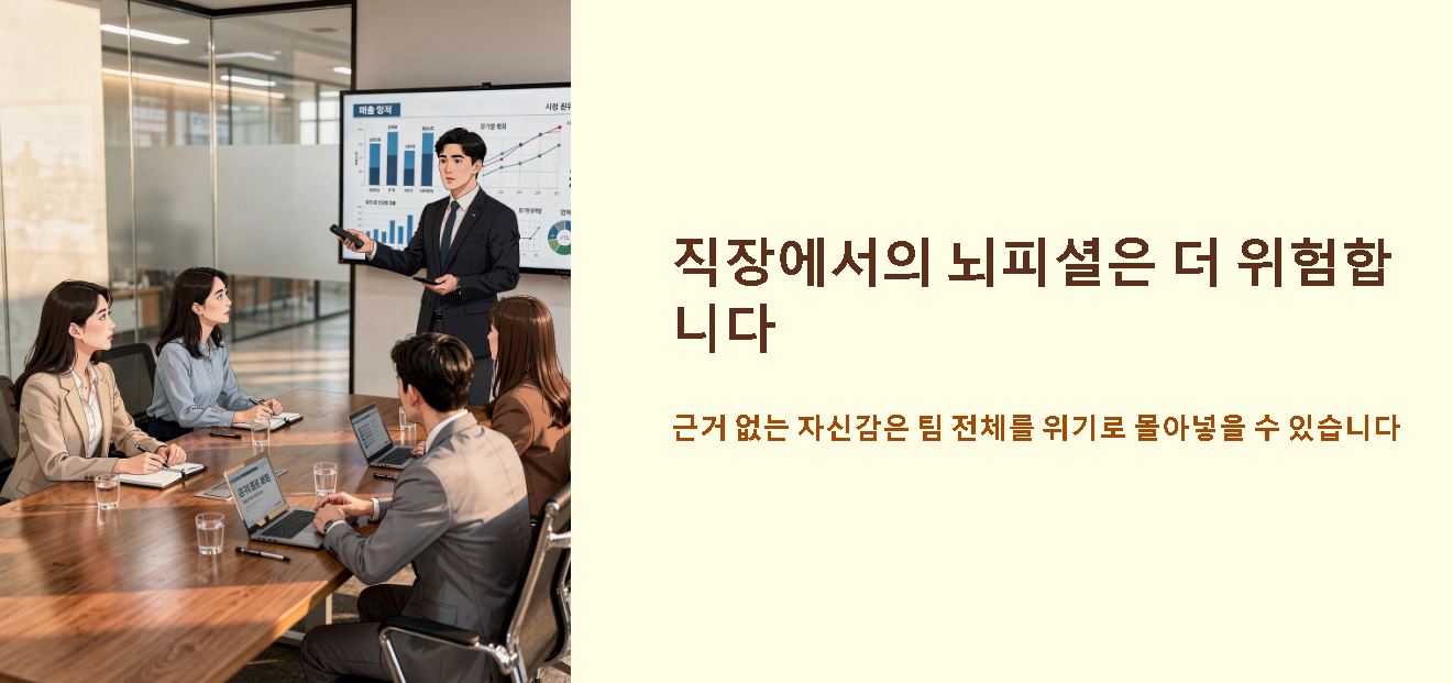 업무 미팅이나 전략 수립 시 근거 없는 자신감은 팀 전체를 위기로 몰아넣을 수 있습니다. 데이터에 기반한 의사결정은 뇌피셜 뜻이 가진 위험 요소를 차단하고 조직의 전문성을 지키는 가장 강력한 방패입니다.