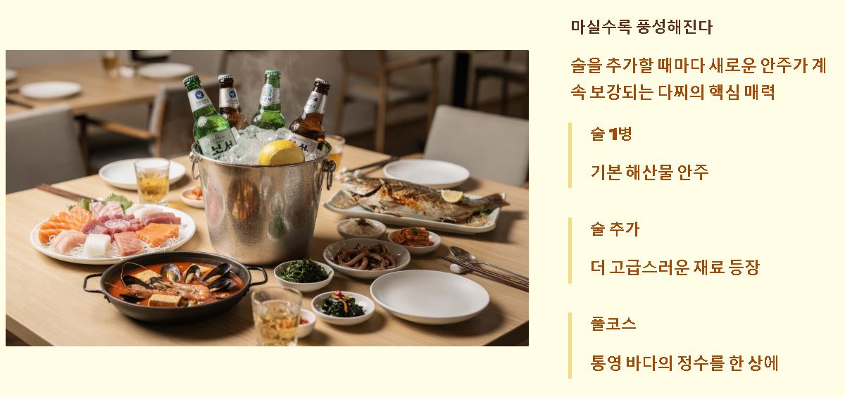 요약: 다찌는 통영의 풍부한 해산물 자원을 바탕으로 조리사의 손맛과 제철의 생명력이 어우러진 종합 미식 플랫폼입니다.