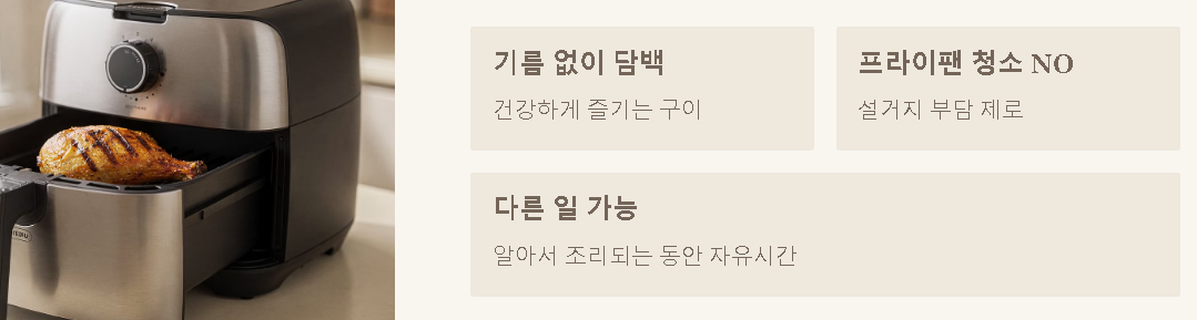 기름기 없이 담백하게 먹고 싶지만 프라이팬 청소하기는 번거로울 때 있죠? 그럴 땐 에어프라이어가 효자 노릇을 해요. 온도만 맞춰두면 알아서 조리되니 그사이에 다른 집안일을 볼 수 있어 참 실속 있답니다.