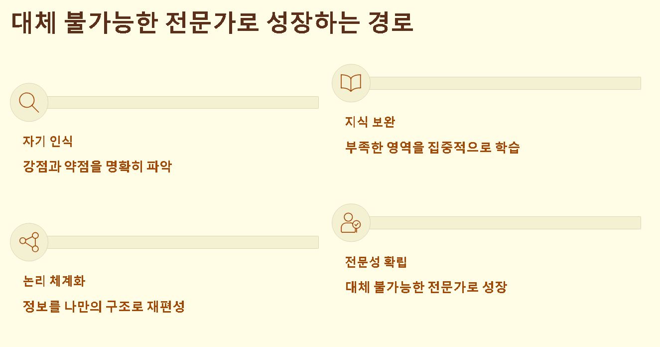 요약: 지속적인 자기 디벨롭은 급변하는 시대적 요구에 부응하며 대체 불가능한 전문가로 거듭나게 만드는 원동력입니다.