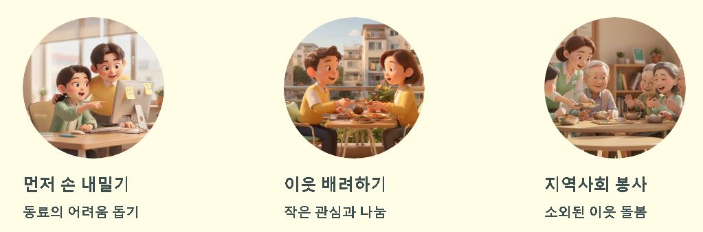 | 자발성 | 마음에서 우러난 행동 | 기분 좋은 나눔의 신호 |