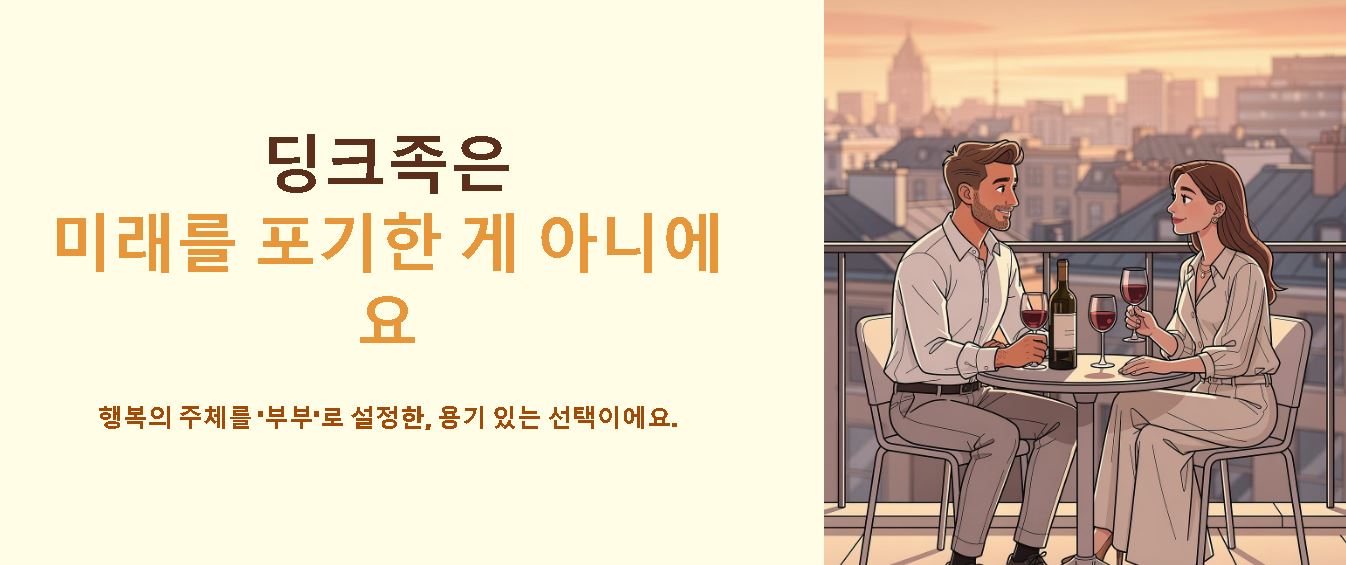 - 부부 중심의 삶 추구: 아이를 키우며 희생하기보다 서로에게 더 집중하고 깊은 정서적 유대감을 쌓는 과정에서 더 큰 행복을 느끼는 분들이 늘어나고 있어요.