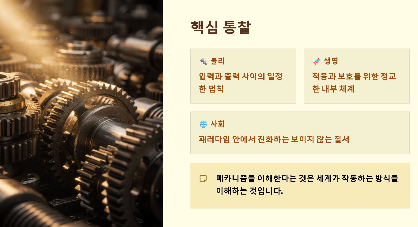 지금까지 복잡한 세상의 톱니바퀴를 움직이는 보이지 않는 설계도, 메카니즘의 뜻에 대해 심층적으로 알아보았습니다. 오늘 정리해 드린 지식들이 여러분이 마주하는 수많은 현상 속에서 단순한 겉모습이 아닌 본질적인 작동 원리를 꿰뚫어 보고, 보다 체계적이고 효율적인 삶의 시스템을 구축해 나가는 데 실질적인 도움이 되기를 바랍니다.