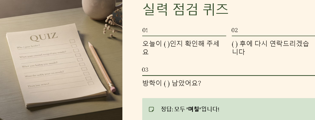 문장 중간에 들어가는 단어들도 예외는 없습니다. 모두 '며칠'로 통일합니다.