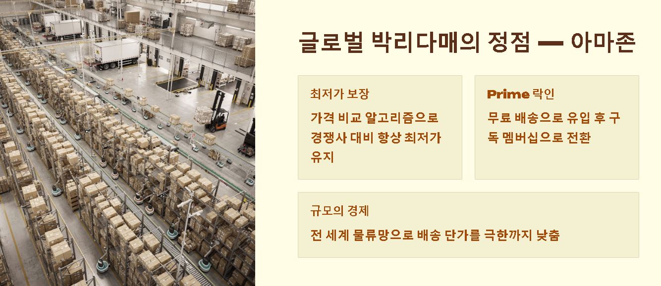 - 최저가 낙찰 시스템: 가격 비교 사이트에서 최상단에 노출되기 위해 이익률을 포기하는 전략을 씁니다.