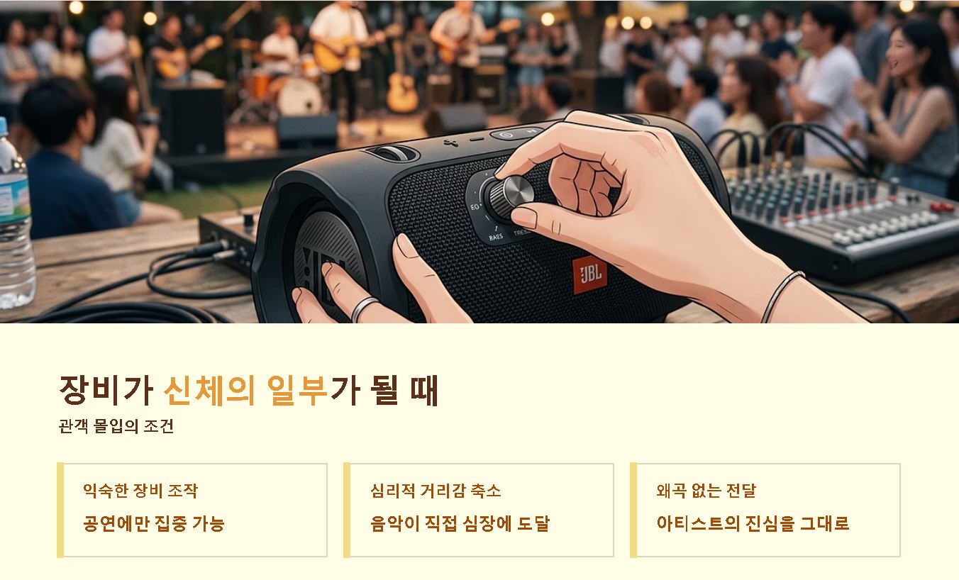 요약: 거리 공연의 본질은 소통에 있으며, 잘 선택된 장비는 아티스트의 진심을 왜곡 없이 대중의 심장에 도달하게 만드는 통로 역할을 합니다.