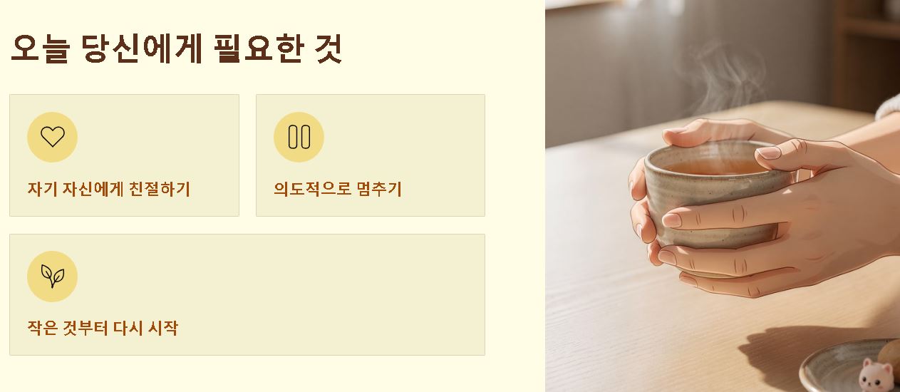 - 거절하지 못하는 마음: 주변의 기대나 부탁을 모두 들어주려다 보니 정작 나 자신을 돌볼 시간과 에너지를 잃어버리게 됩니다.
