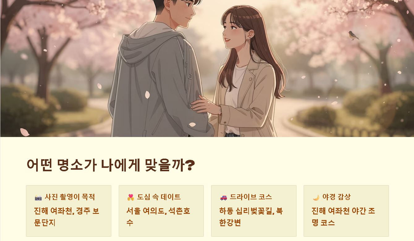 요약: 사진 촬영이 목적이라면 진해와 경주를, 도심 속 데이트를 원한다면 서울의 주요 코스를 추천합니다.