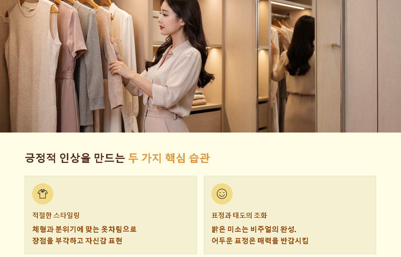- 표정과 태도의 조화: 아무리 외모가 훌륭해도 어두운 표정은 매력을 반감시키므로, 밝은 미소가 비주얼의 완성이라 할 수 있습니다.