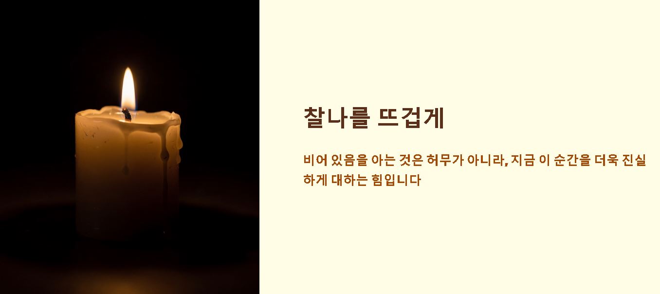 요약: 비어 있음을 아는 것은 인생의 허무를 느끼는 것이 아니라, 오히려 찰나의 삶을 더욱 진실하고 뜨겁게 대하게 만드는 동력입니다.