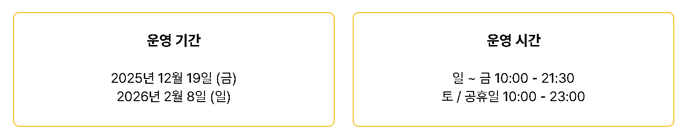 | 운영기간 | 2025.12.19(금) ~ 2026.2.8(일) |