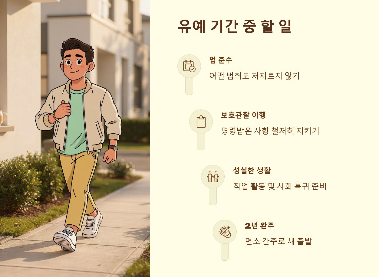 - 유예 기간 중 재범: 2년 내에 새로운 범죄로 자격정지 이상의 판결을 받으면 유예가 취소됩니다.