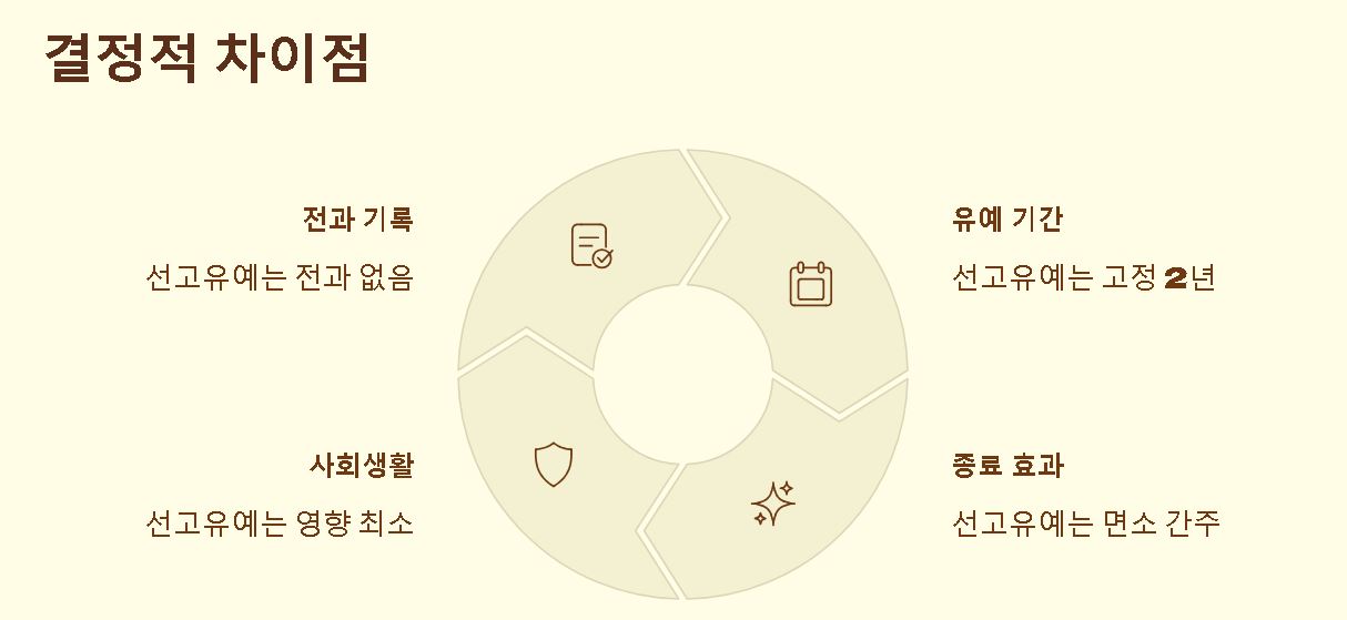 - 선고유예: 재판은 받지만 전과가 남지 않으며, 2년 후 면소 간주되는 파격적인 혜택을 줍니다.