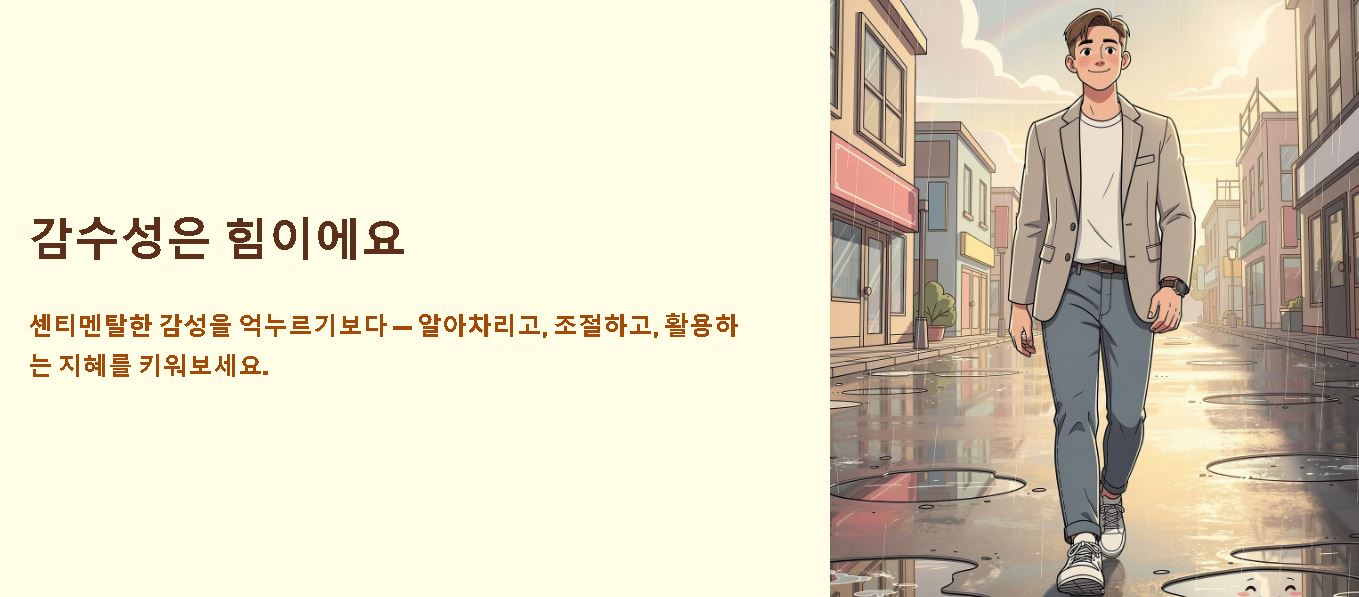 - 루틴의 힘: 감정이 요동칠수록 일정한 시간에 일어나고 운동하는 습관을 유지하세요. 몸의 펀더멘탈이 튼튼하면 마음의 센티멘탈도 쉽게 흔들리지 않아요.