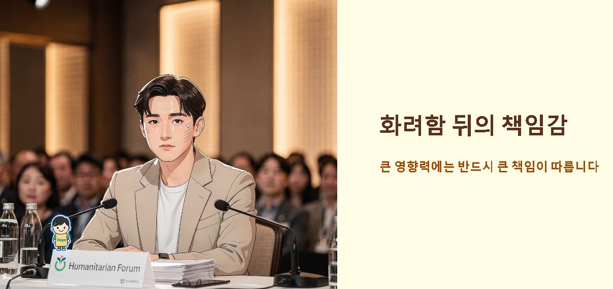 - 선한 영향력의 전파와 실천: 기후 위기 극복, 취약 계층 지원 등 사회적 문제에 목소리를 내고 직접 실천함으로써 대중의 동참을 이끌어내는 긍정적인 리더십을 발휘합니다.