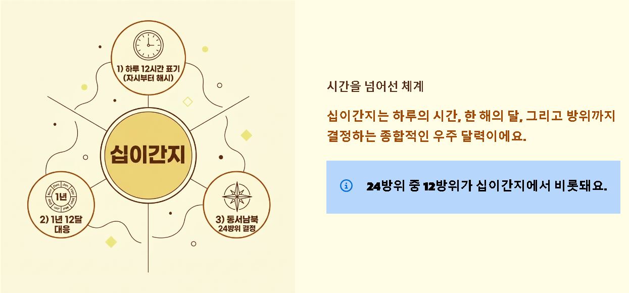 - 달력과 방위의 기준: 십이간지는 1년 12달을 나타내기도 하고, 동서남북 24방위를 결정하는 중요한 기준이 되기도 해요.