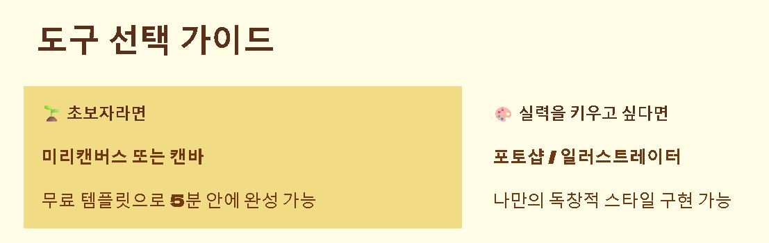 - 포토샵/일러스트레이터: 좀 더 정교하고 독창적인 효과를 주고 싶을 때 사용하는 전문가용 툴이에요.