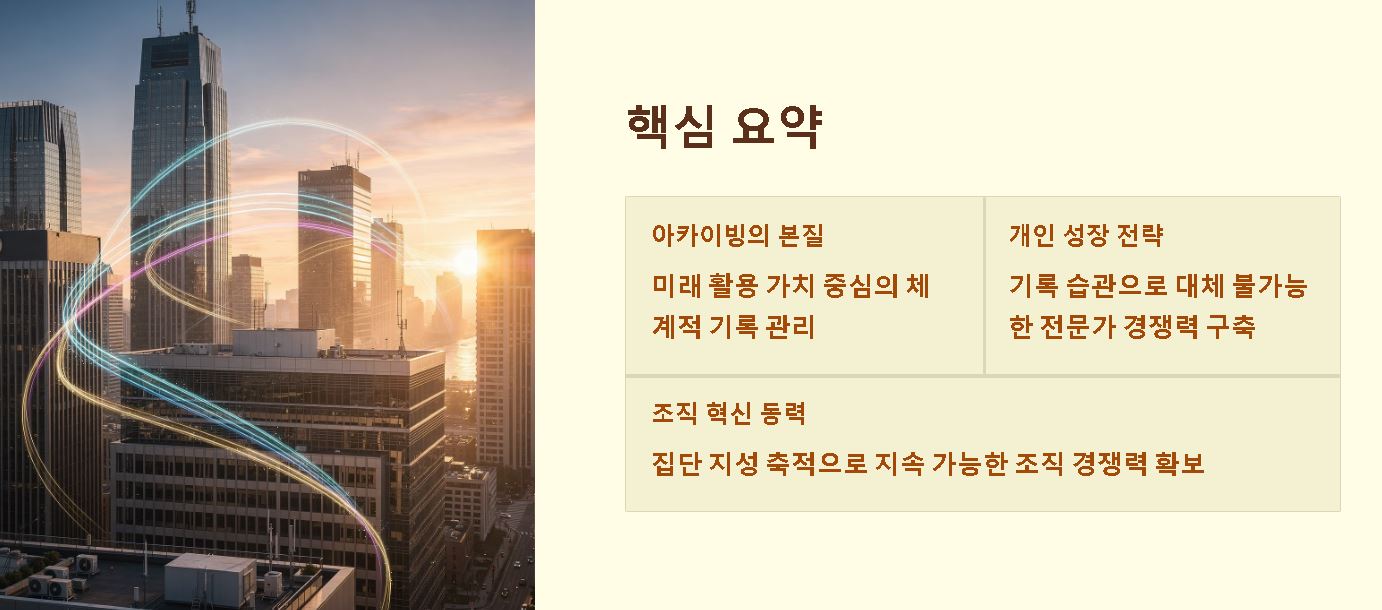 요약: 체계적인 기록 습관은 파편화된 정보를 자산으로 전환하여 개인의 가치를 증명하는 무기가 됩니다.