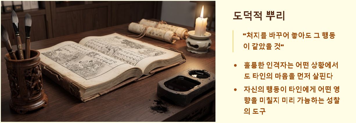 - 보편적 선의 추구: 훌륭한 인격자는 어떤 상황에서도 타인의 마음을 먼저 살핀다는 유교적 가르침을 담고 있습니다.