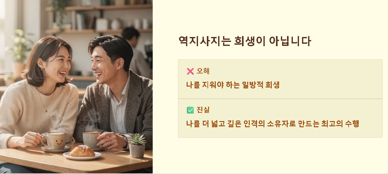요약: 역지사지는 타인을 위한 희생이 아니라, 나를 더 넓고 깊은 인격의 소유자로 만드는 최고의 수행입니다.