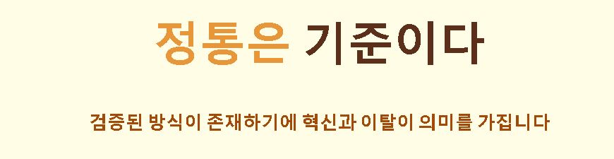- Q: 초보자에게 권장하는 태도는? 모든 창의성은 정통적인 기본기에서 나옵니다. 처음에는 오소독스한 방식을 완벽히 익히는 것이 우선입니다.