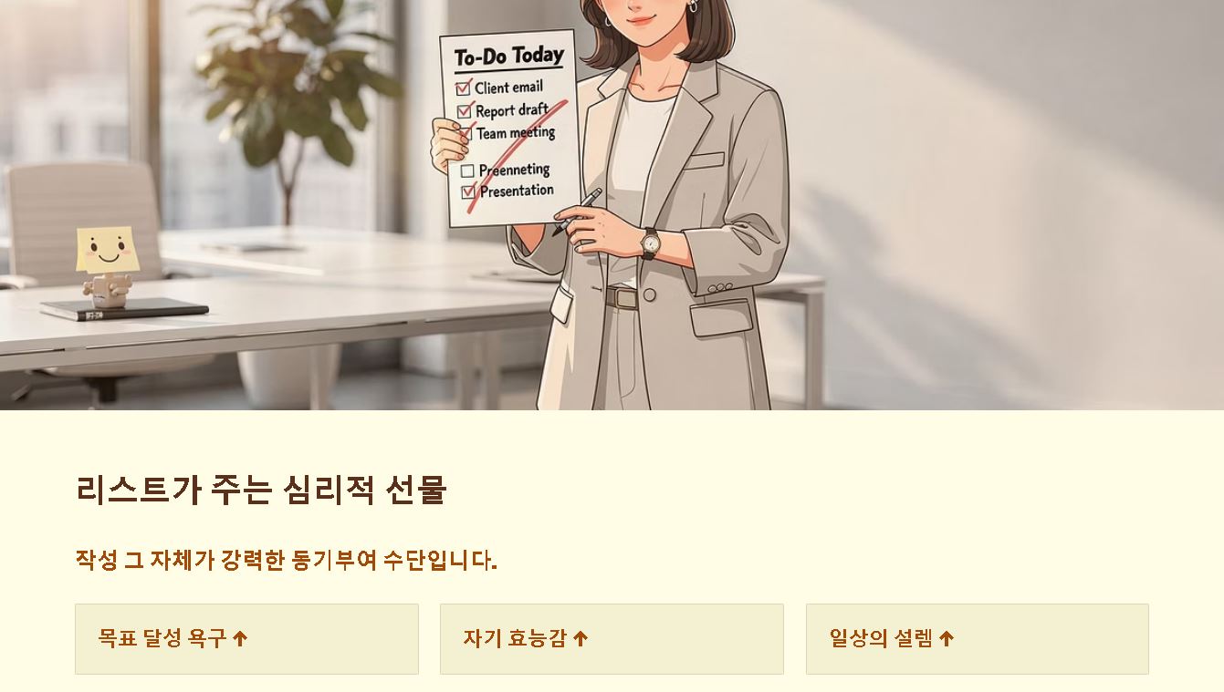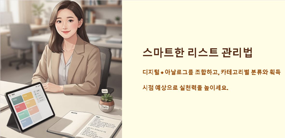- 성취감의 극대화: 리스트의 항목을 하나씩 지워나갈 때 느끼는 카타르시스가 삶의 질을 높입니다.