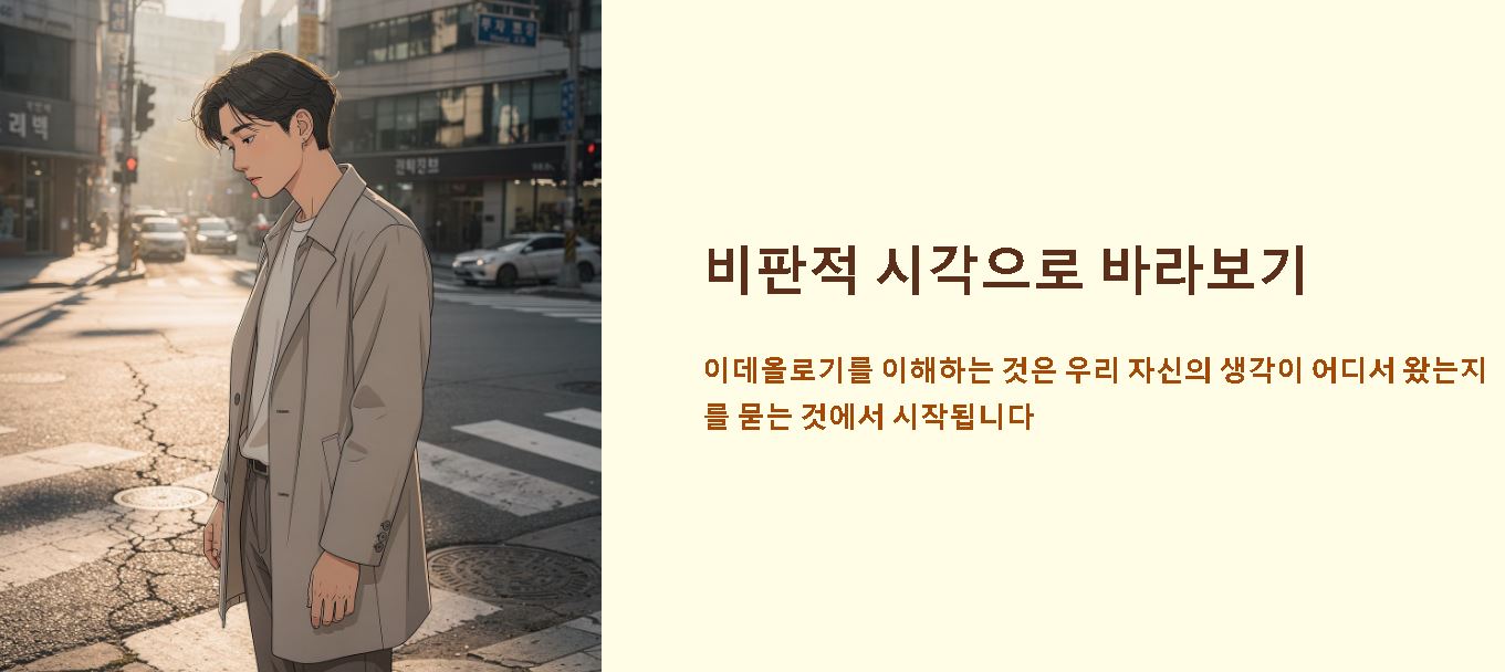 요약: 이데올로기는 개인과 집단의 사고방식을 결정짓는 체계적인 신념의 집합체로 사회를 움직이는 보이지 않는 설계도와 같습니다.