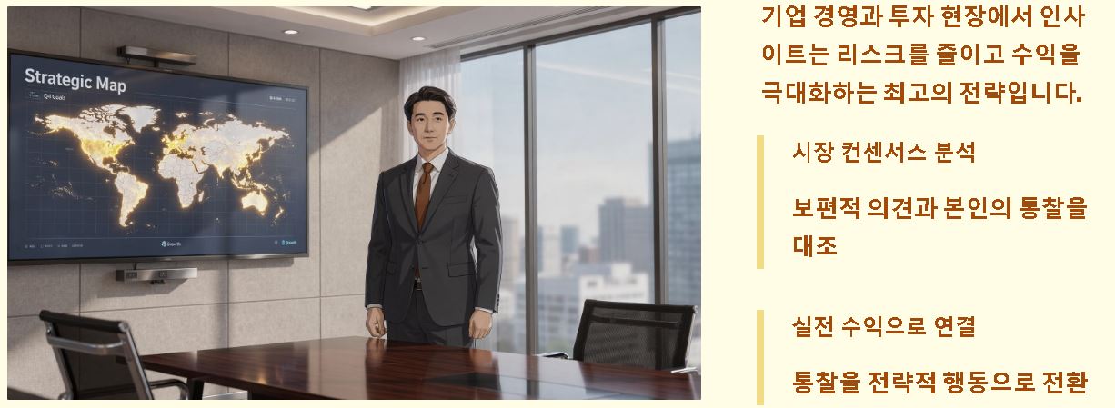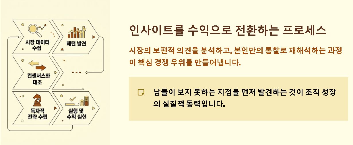 - 차별화된 전략 수립: 모두가 비슷하게 생각하는 컨센서스를 넘어서는 독창적인 아이디어로 시장의 주도권을 잡습니다.