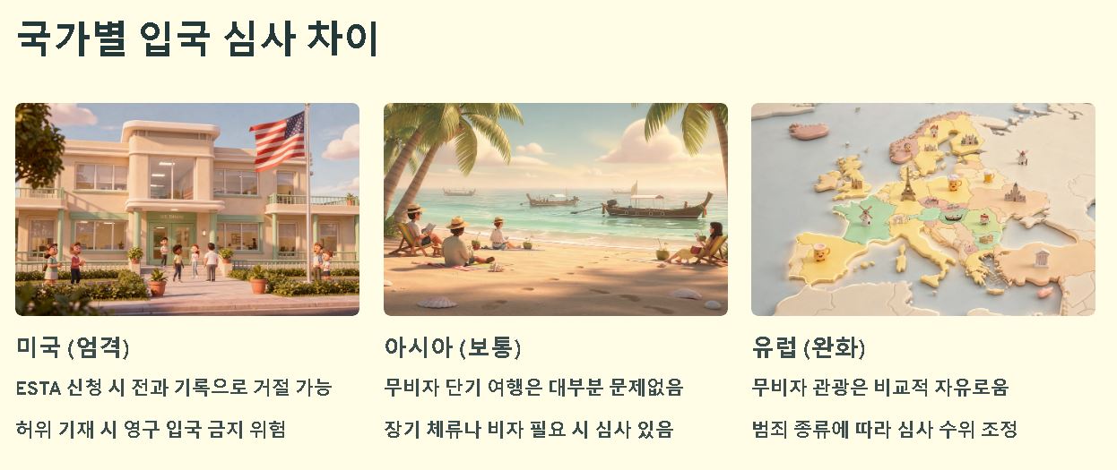 빠른요약: 출국 금지가 아니더라도 상대 국가의 비자 심사에서 전과 기록이 결격 사유가 될 수 있습니다.
