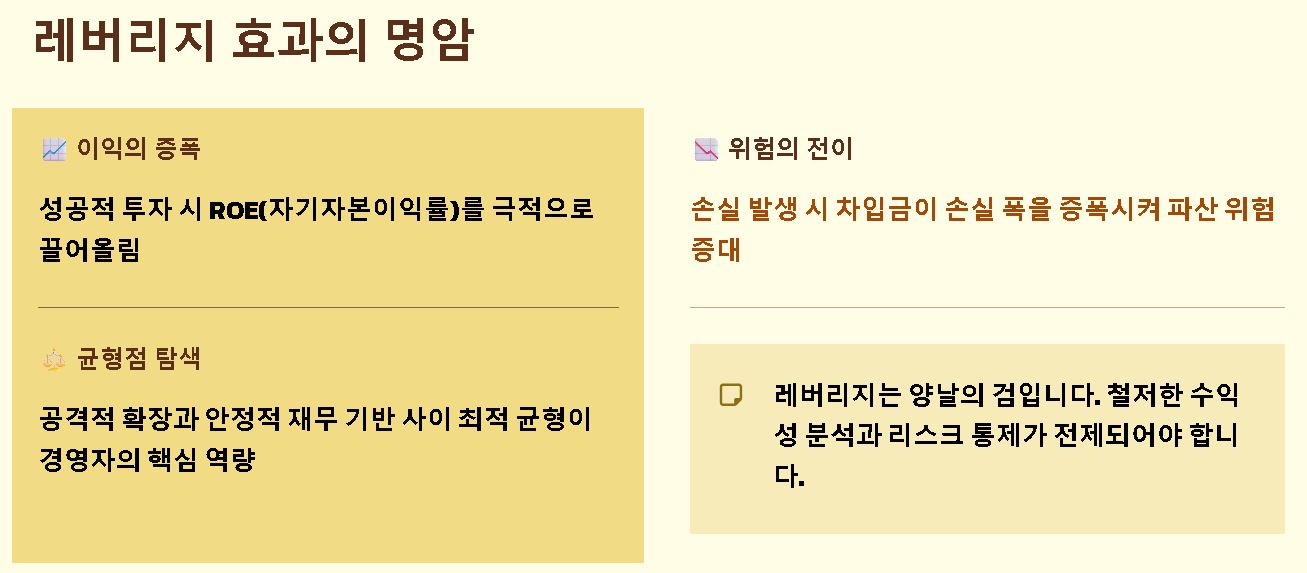 - 균형점 탐색: 공격적인 확장과 안정적인 재무 기반 사이에서 최적의 균형을 찾는 것이 경영자의 핵심 역량입니다.