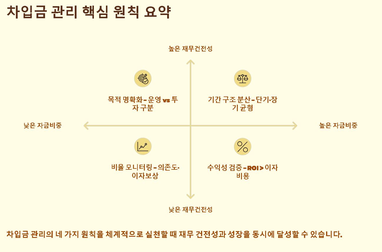 요약: 차입금은 양날의 검과 같아서, 철저한 수익성 분석과 리스크 통제가 전제될 때 최상의 경영 도구가 됩니다.