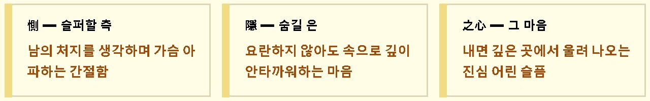 - 숨길 은(隱): 겉으로 요란하게 드러내지 않아도 속으로 깊이 안타까워함을 뜻합니다.