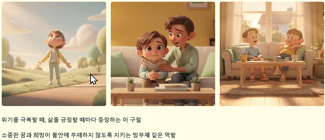이럴 때가 제일 든든한 법인데 내가 할 수 있는 최선을 다했다면 그다음은 하늘의 뜻에 맡기는 여유를 가져보세요. 긍정적인 태도가 우리 가정을 행복하게 유지하는 가장 든든한 울타리가 되어줄 것이며 결국 더 나은 내일을 만드는 발판이 될 것으로 보여요.