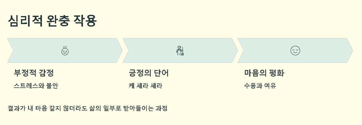 | 케 세라 세라 | 결과에 대한 순응 | 미래가 불안할 때 |