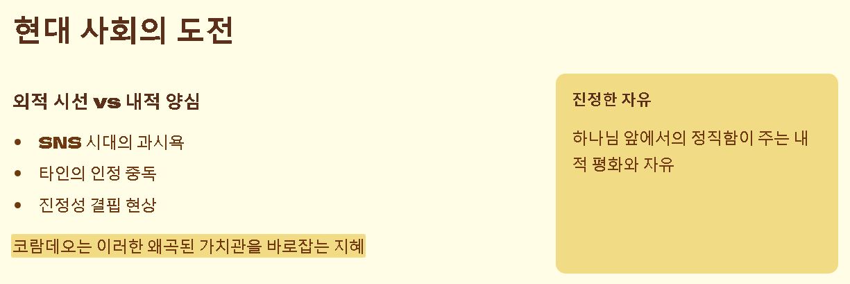 - Q: '코람데오'를 일상 대화에서 써도 되나요? 네, 기독교적 가치관뿐만 아니라 '철저한 자기 관리'나 '양심적 삶'을 뜻하는 대명사로 널리 쓰입니다.