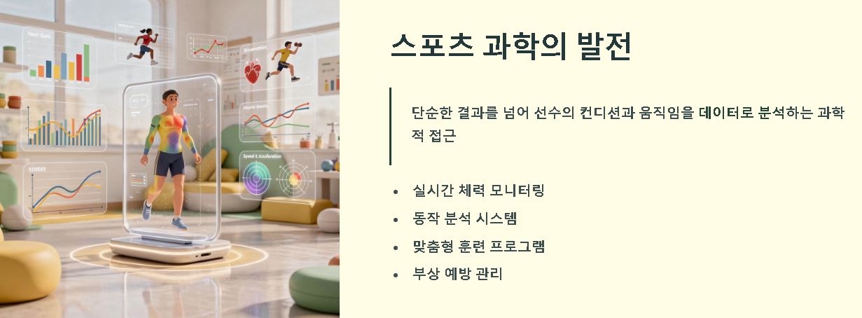 운동선수에게 퍼포먼스는 훈련을 통해 다져진 실제 경기력을 뜻합니다. 중요한 승부처에서 자신의 기량을 100% 발휘하는 Athletic Ability(운동 능력)가 핵심인데요. 최근에는 단순히 결과뿐만 아니라 선수의 컨디션과 움직임을 데이터로 분석하는 Science(스포츠 과학) 영역으로 확장되고 있다는 점을 작성했어요.