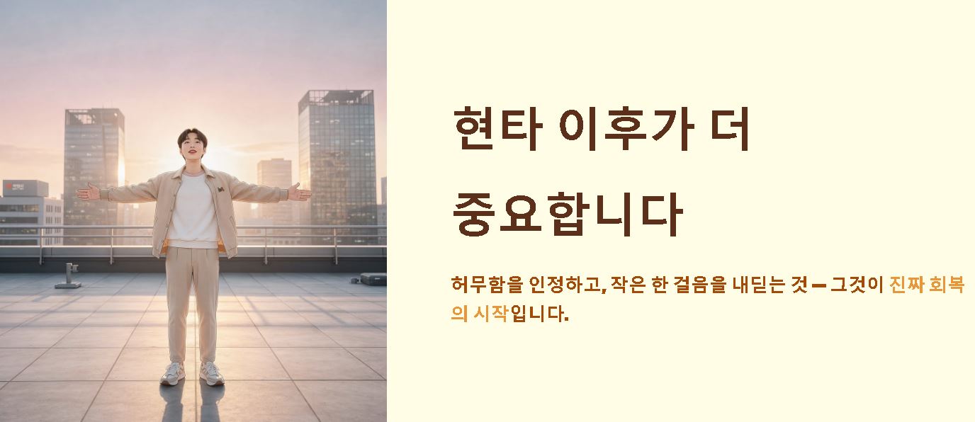 요약: 현타는 삶의 속도를 조절하라는 신호이므로, 감정에 매몰되기보다 자신을 돌보고 소소한 성취를 쌓아가는 휴식기로 삼는 것이 좋습니다.