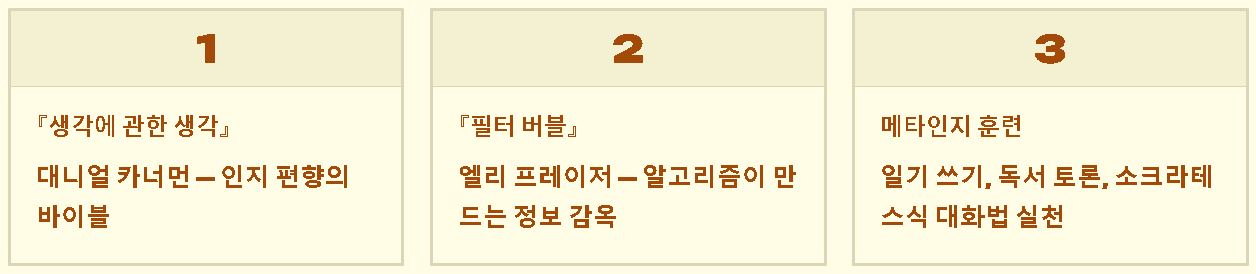 - 생각의 기록: 자신이 내린 결정의 이유와 근거를 아카이빙하여 사후에 편향이 없었는지 복기합니다.