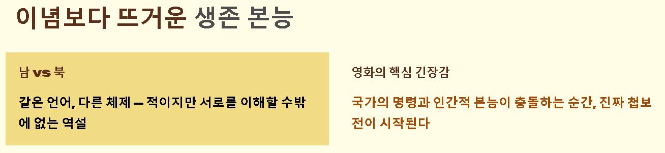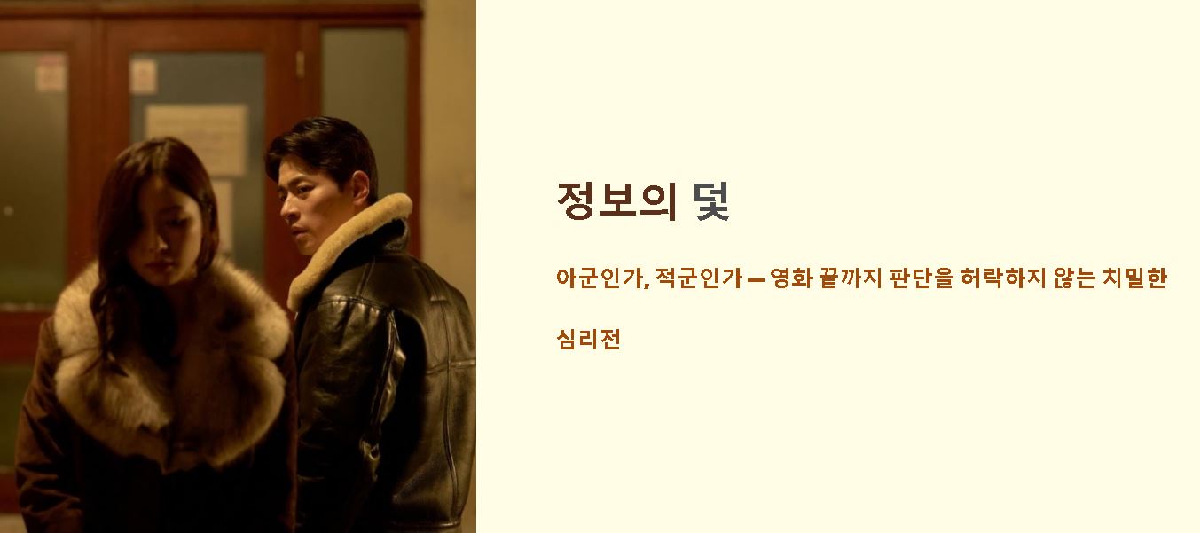 - 정보의 덫: 영화 끝까지 아군과 적군을 가리기 힘든 치밀한 심리 싸움이 전개됩니다.
