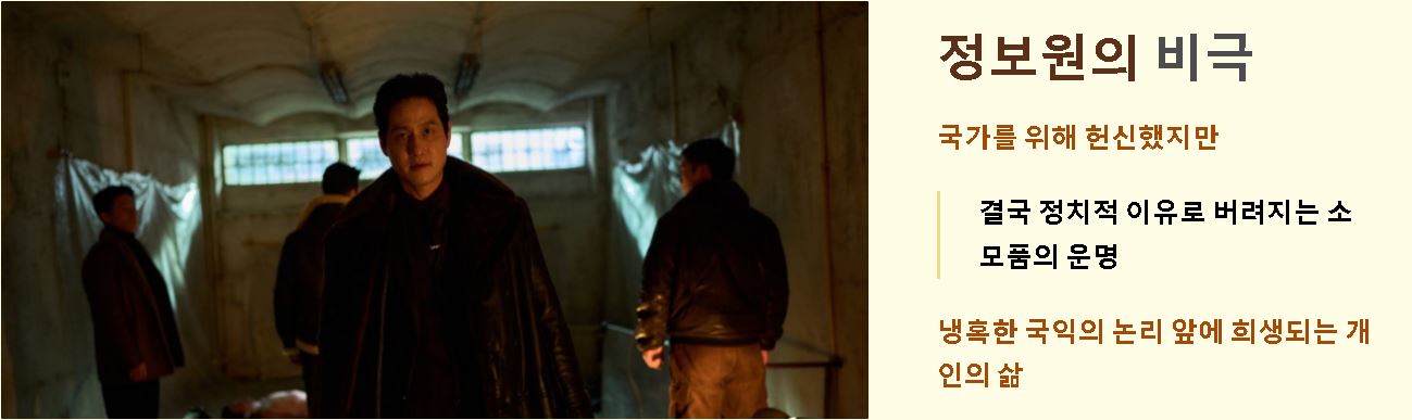 - 정보원의 소모품화: 국가를 위해 헌신했지만 결국 정치적 이유로 버려지는 정보원의 비극이 강조됩니다.